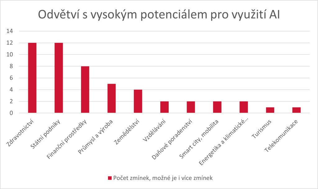 Sektory s nejvyšším potenciálem AI uvedené ve studii jsou zdravotnictví a státní podniky, jak ukazuje následující graf.