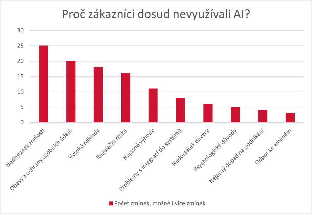 Následující graf ukazuje počet odpovědí zákazníků na otázku, proč AI ještě nepoužívají.